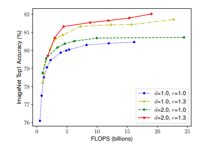 Để xác thực trực giác của mình, nhóm tác giả so sánh việc thu phóng theo chiều rộng và theo các độ sâu cũng như độ phân giải mạng ở các mức độ khác nhau.
