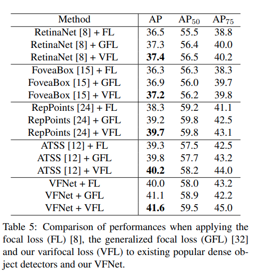 Để kiểm tra tính hiệu quả của Iou-aware Classification Score cũng như hàm lỗi mới, nhóm tác giả đã cài đặt chúng trong VarifocalNet bằng cách gắn ba thành phần trên vào kiến trúc mạng FCOS và loại bỏ nhánh trung tâm ban đầu. Sau quá trình huấn luyện và kiểm tra trên tập COCO test-dev, kế quả cho thấy so với các strong baseline ATSS, VFNet được ∼2.0 AP gaps với các backbone khác nhau, ví dụ: 46.0 AP so với 43.6 AP với backbone ResNet-10. Chi tiết kết quả được thể hiện trong paper, vì hình khá lớn nên mình sẽ không chụp và thêm vào bài viết.